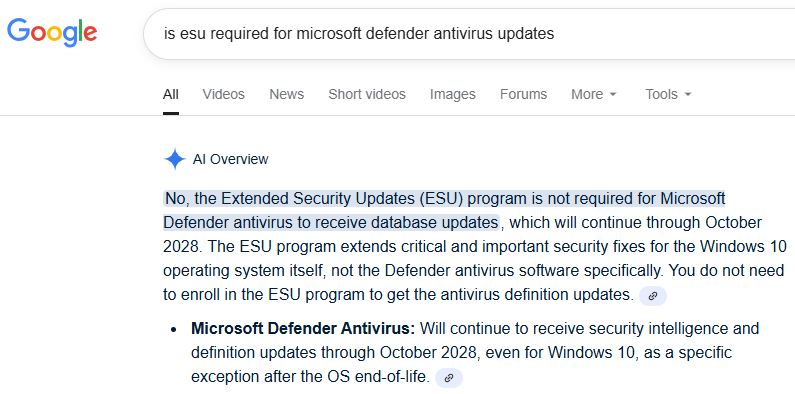 Roger: | Microsoft will continue to provide security intelligence updates for the built-in Microsoft Defender Antivirus protection through October 2028. |
