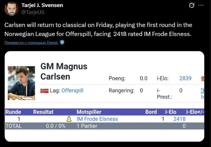 — Это потрясающий результат против любого, а особенно против него. Это тебя как-то дополнительно мотивировало, Магнус?