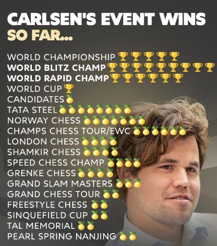 Об этом Карлсен рассказал NRK после того, как завоевал два из двух возможных золотых медалей чемпионата мира в Дохе. Таким образом, он возвращается домой с золотом как в блице, так и в рапиде. Последний титул — в блице — был завоёван после уверенной победы над Нодирбеком Абдусатторовым.
