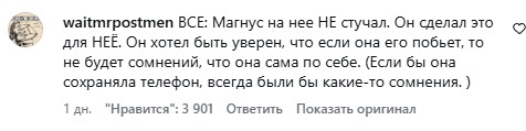 Я мотивы Карлсена понимаю, но понятно, что она бы не читерила, показав телефон.