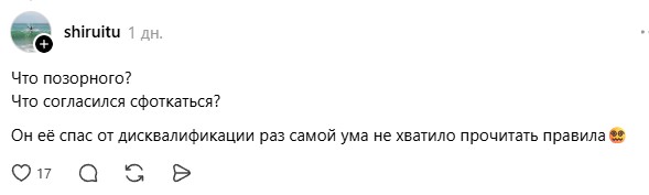 Я видел её твит с селфи, так она просто была счастлива и благодарна, и никакого "пожаловался судье", естественнно. |