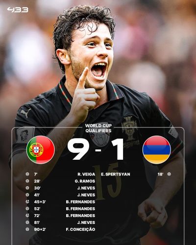 Португальцы без Роналду просто уничтожили сборную Армении. Итог матча — 9:1.