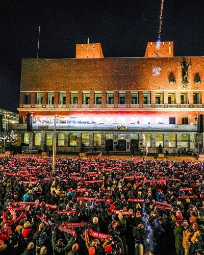 Более 50 000 норвежцев приветствовали Эрлинга Халанда и сборную Норвегии в Осло после выхода команды в финальную часть чемпионата мира.