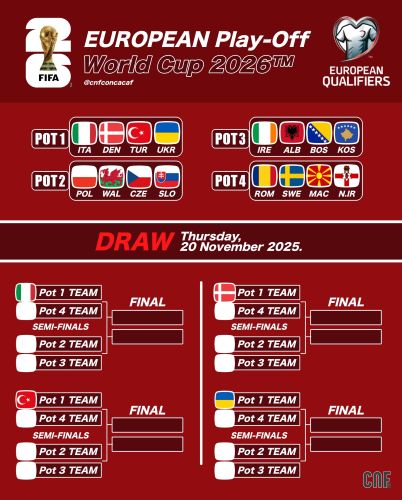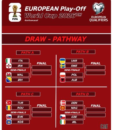 Стали известны все участники стыковых матчей за право сыграть на чемпионате мира по футболу в 2026 году от Европы.