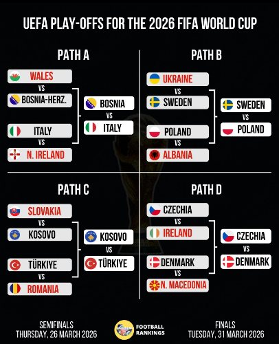Сборные Швеции и Турции квалифицировались в финальную часть чемпионата мира по футболу 2026 года.