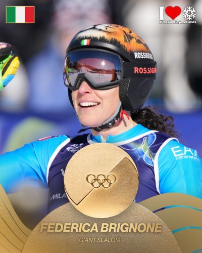Федерика Бриньоне завоевала своё второе золото #MilanoCortina2026 в женском гигантском слаломе.