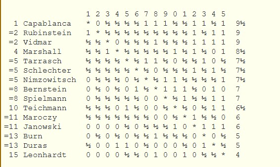 «Предупреждённый», — цитирую из бюллетеня легендарного турнира, — «что соперниками будут исключительно шахматисты первого разряда, великий кубинец выразил удовлетворение таким подбором команды. До этого, в Манчестере, Амстердаме и Роттердаме, Лейпциге и Берлине, Праге и Варшаве, Капабланка проводил сеансы с сильнейшими шахматистами этих городов. В Манчестере он выиграл 39 из 40 партий; в Варшаве — из 34 партий 24 выиграл и 6 свёл вничью».