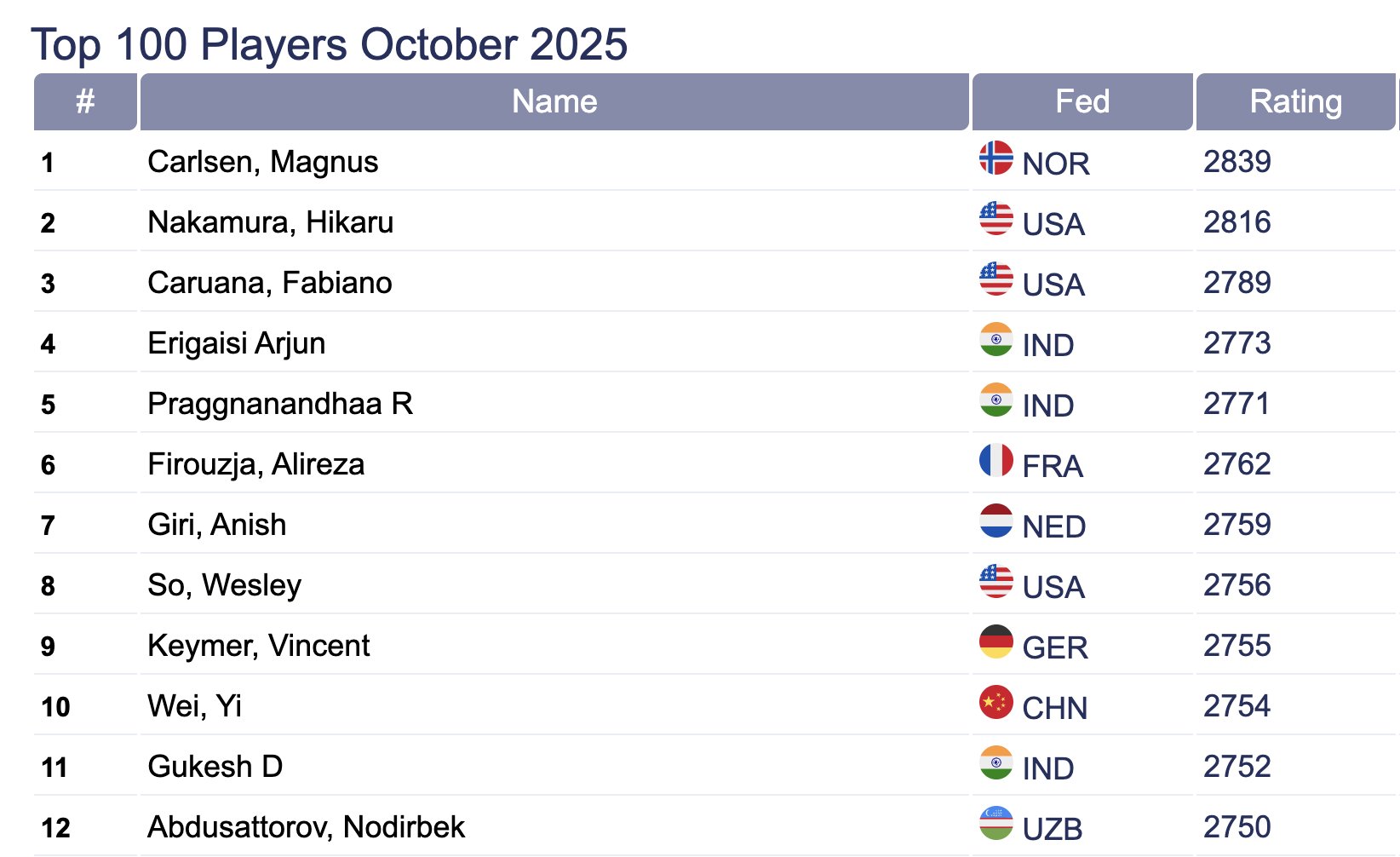 Фармит он Каруану (дважды обыграл его в American Cup 2025 и один раз в Norway Chess 2025), с кандидатов в мастера много не поимеешь. Вот где безобразие. Я бы ввёл на этот счёт правило, уменьшив вес победы над Фабиано. А то тот нарастил рейтинг и постепенно выдаёт его Накамуре. |