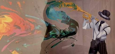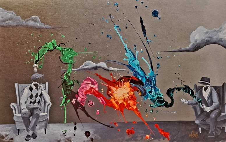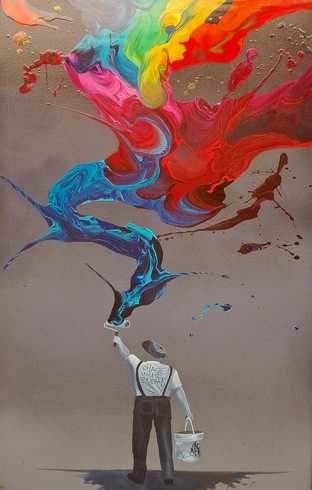 Если помните картину, где кисть рисует с брызгами красок, то вот много в таком же стиле: