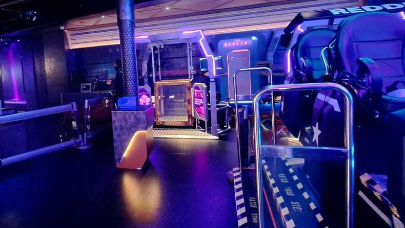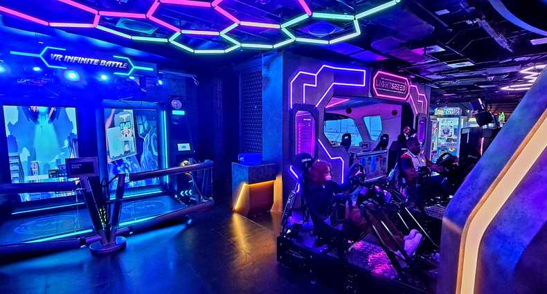 Прошли сквозь комнату виртуальной реальности. Часть автоматов платная, часть уже оплачена.