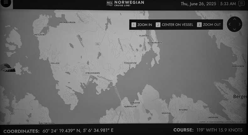 Слева огромное изображение корабля. Справа выглядывает норвежский порт Берген. Кораблю нужно будет туда пробраться. Опасно.