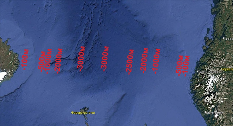 Вот примерная батиметрия этой части Норвежского моря