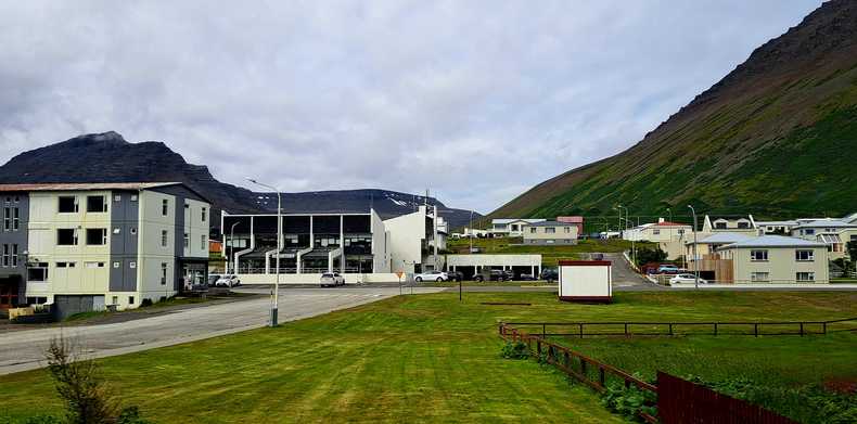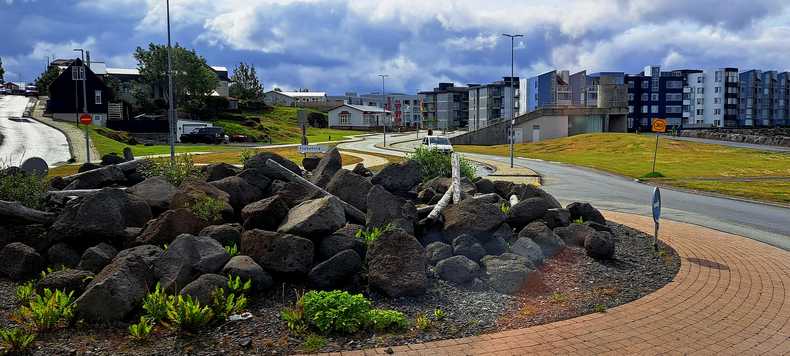 На первом фото с «клумбой» вдали видно, что между частными домами лежит лава и ее не трогают - пусть лучше там живут тролли, чем в твоем доме. В городке порядка 30 тыс. населения. |