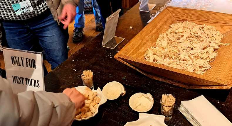 Перед музеем нас предупредили, что будем дегустировать акулу. Что руками кусочки не трогать - потом пальцы будут вонять весь день. И запивать полагается виски.