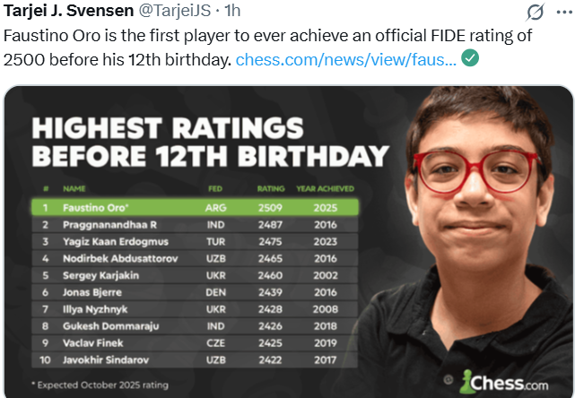Конечно, у Фаустино есть и очень сильные партии. Например, как он выиграл у Пишо, очень крепкого шахматиста. Это действительно впечатляет для 11-летнего ребёнка. Его главное качество — уверенность. Обычно в таком возрасте даже очень талантливые дети сомневаются в себе, а он искренне верит, что сможет победить гроссмейстеров и что когда-нибудь войдёт в число сильнейших. Эта вера работает на него.