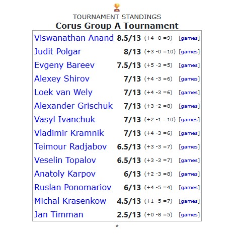=4 Ivanchuk 33 2699 ½ ½ 0 ½ ½ ½ * ½ ½ ½ ½ 1 ½ 1 7
