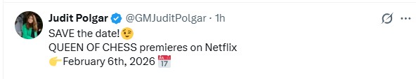 Юдит, сегодня завершающий день общего зачёта Freestyle Chess Tour и одновременно замечательный день и в вашей жизни. Вы сделали большое объявление в социальных сетях: выходит документальный фильм о вашей жизни, и его премьера состоится на фестивале Sundance. Это огромное событие.