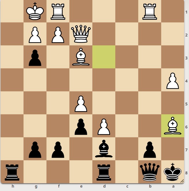 | Там зеленые клетки показывают, что белые взяли слоном на a6. |