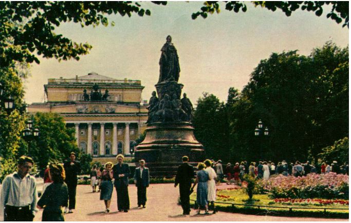 Ленинград 1952. Памятник Екатерине второй и Пушкинский театр. |
