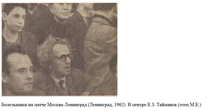 Один раз мне посчастливилось играть с Таймановым за одну команду - ЛГУ. Он на первой доске, я на -дцатой. В каком году это было точно не помню, помню только, что свою партию я выиграл, а Марк Евгеньевич сыграл вничью.