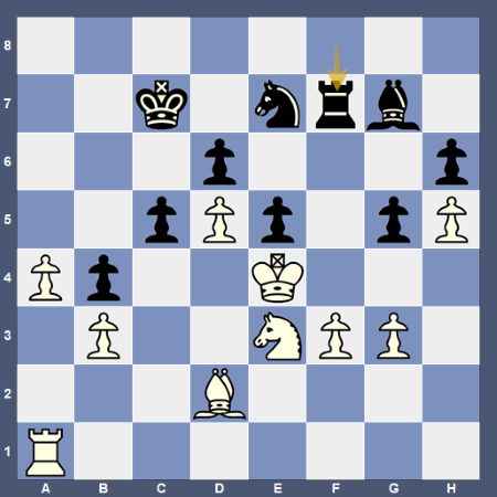 Здесь Петросян нашёл единственный путь к большому перевесу белыми. Это действительно красиво, даже если не так уж сложно для объяснения. |