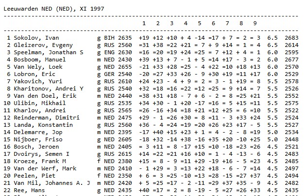 | Он проходил с 7 по 16 ноября. В турнире участвовали 40 игроков, из них 14 — международные гроссмейстеры (в том числе Ван Вели, Соколов и Спилман) и 13 — международные мастера. Победу в турнире разделили Иван Соколов и Евгений Глейзеров, набравшие одинаковое количество очков. |