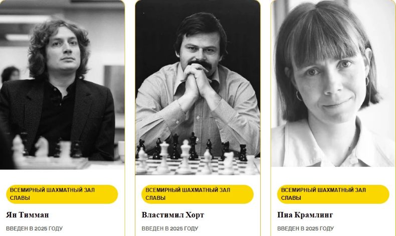 Пиа Крамлинг, Властимил Горт и Ян Тимман включены в Всемирный шахматный Зал славы.