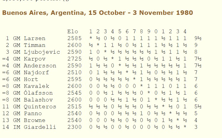 «Карпов пал, а Ларсен совершил подвиг», — так озаглавил статью Clarín от 26 октября. Карпов проиграл Тимману и имел 4 очка из 7. После матча в Багио 1978 года Карпов выиграл все турниры, в которых участвовал, и эта серия, казалось, должна была прерваться.