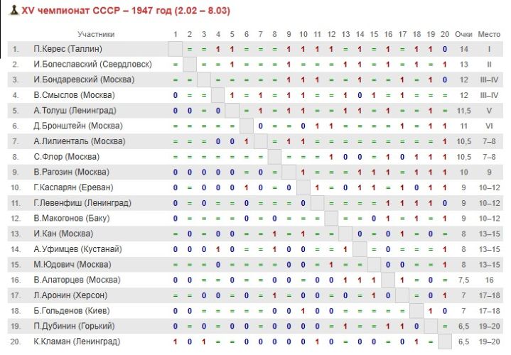 Судьба Кереса во время войны — это особая сложная тема. В 1940 году балтийские республики в добровольно- принудительном порядке становятся частью СССР, и Керес становится советским шахматистом. Он играет в первенстве Союза и занимает четвертое место — не слишком удачно, но при этом, опередив Ботвинника. Затем следует затеянный Ботвинником матч-турнир на звание абсолютного чемпиона СССР, и в турнире шести сильнейших Керес становится вторым, сильно уступив в принципиальной гонке инициатору проекта. Конечно, эстонскому шахматисту приходилось трудно, всё вокруг было чужое - сталинский Союз это не Европа, к которой Пауль привык. К тому же Керес лишь начинал осваивать русский язык и ощущал себя чужим, но выступал достойно. Потом война докатывается до советских границ, и вот уже балтийские страны контролируются немцами. Керес продолжает играть в шахматы и при новой власти. Во время войны он много играет в турнирах на захваченных немцами территориях — и это потом ему припомнят. Я не вижу тут повода для упреков. Что он должен был делать в этом молохе войны? Керес не делал никаких заявлений. В отличие от Алехина не писал и не подписывал никакие статьи и даже отказался сыграть матч с Алехиным за титул. Тем не менее, очевидно, что для советского шахматиста — а Керес стал таковым формально в 1940 году — игра на турнирах, организованных фашистами, это серьёзное преступление. Поэтому, в 1944 году, накануне вступления советских войск в Эстонию, Керес с семьей собирались покинуть родную страну — но корабль, который должен был вывезти их и еще некоторых представителей эстонской интеллигенции, так и не пришел. Эту фразу следует понимать буквально - семья ждала с чемоданами на пирсе. Но не судьба. И Пауль Петрович остался в Союзе. Я чувствую, что последняя фраза звучит, как прелюдия к последующему рассказу о горькой участи эстонского гроссмейстера. Но нет, судьба Кереса была достаточно благополучна.