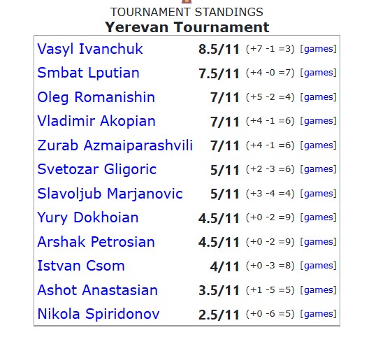 Svetozar Gligoric - Vladimir Eduardovich Akopian