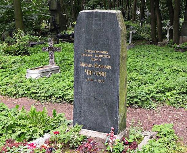 Могила М. И. Чигорина на Новодевичьем кладбище в Санкт-Петербурге.