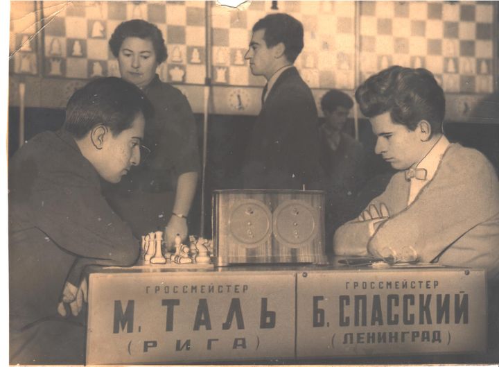 Михаил Таль - Борис Спасский На втором плане К.Гогиава (судья) и Лев Полугаевский, Тбилиси, 1959