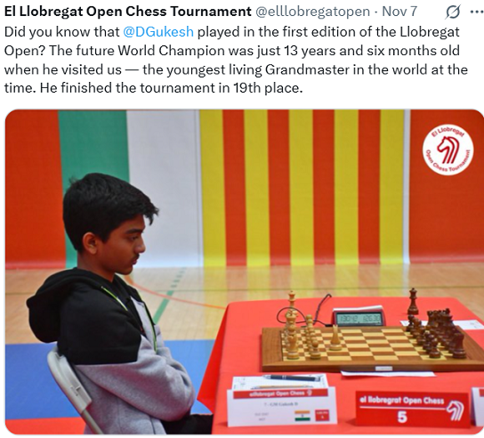На самом деле, Гукеш начал учиться шахматам только в семь лет, что относительно поздно для игрока самого высокого уровня. Однако его карьера началась с невероятной скоростью: всего шесть месяцев прошло между тем, как он впервые выучил ходы, и получением рейтинга ФИДЕ. Он благодарит своего тренера Бхаскара и отца, которые поддерживали его как финансово, так и в роли менеджера.
