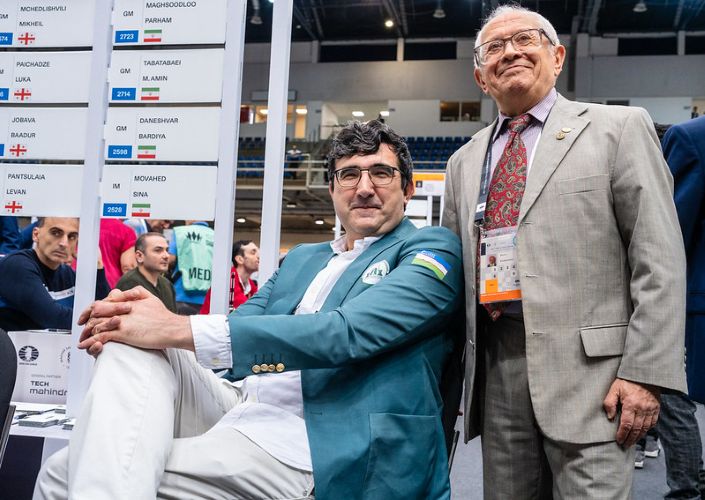 С одним из арбитров турнира, Борисом Постовским, которому 31-го мая исполняется 70 лет, у нас вышел небольшой спор. Борис Наумович, человек старой закалки, считает, что героев моих репортажей не стоит называть "игроки", лучше, говорит самый удачливый капитан российских сборных, называть их "шахматисты".