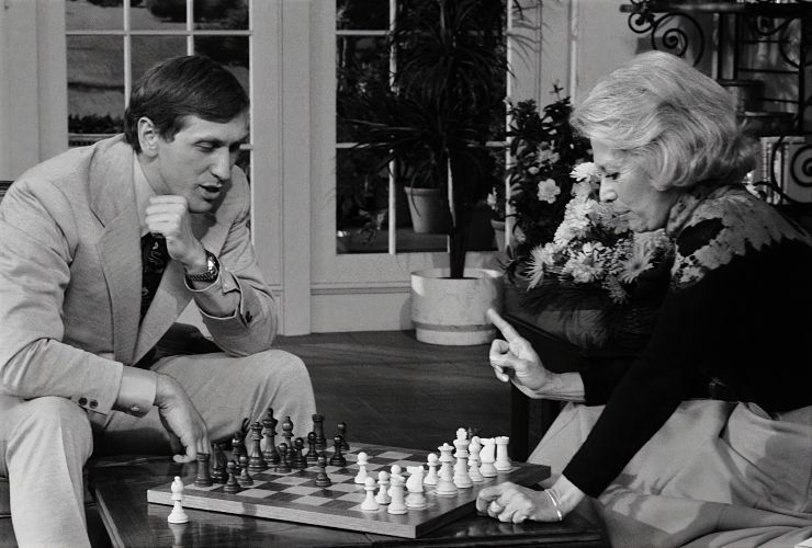 Можете назвать этого шахматиста (слева)? Дополнительные очки, если вы также знаете имя его тренера. |