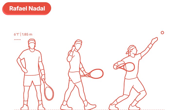 Видимо, художнику не захотелось изображать его к нам спиной, за которой была бы почти не видна ракетка. А изображение трёх фигур справа налево поняли бы только арабы)
