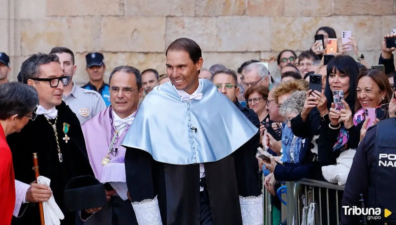 Исторический Patio de Escuelas Mayores Университета Саламанки был полностью заполнен в эту пятницу, чтобы принять Рафаэля Надаля, удостоенного звания почётного доктора. С самого утра ощущалась атмосфера праздника: студенты, горожане и поклонники хотели поддержать теннисиста с Майорки в такой особенный день.