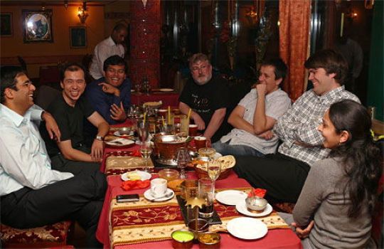 | Ключ к победе Ананда со счётом 6,5–4,5 над Крамником — его команда секундантов. Обратите внимание на самого высокого среди них. |