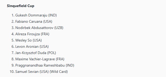Sinquefield Cup: Tour players: Caruana, Pragg, Gukesh, Abdusattorov, Firouzja, So, Aronian, MVL, Duda