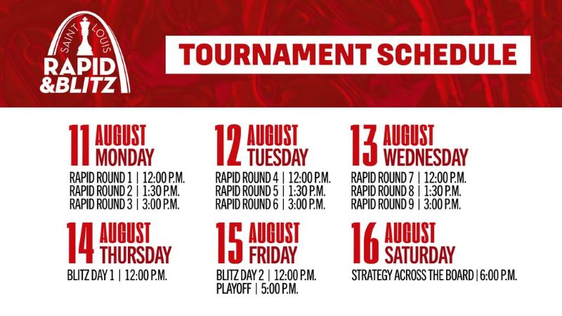 С 11 по 15 августа начнется турнир Saint Louis Rapid & Blitz.