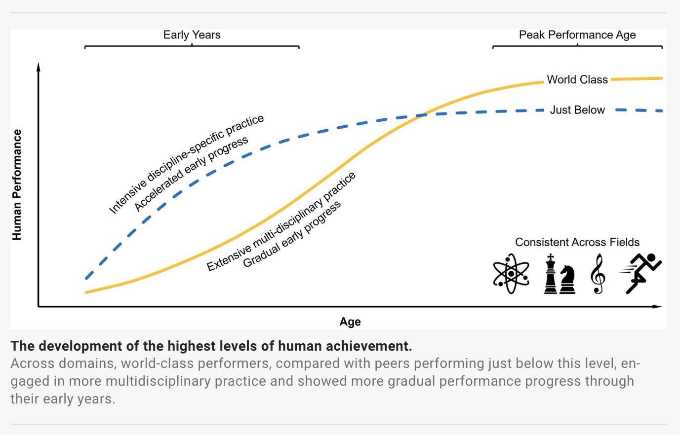 Масштабное новое исследование пиковых достижений охватило 34 000 ведущих профессионалов мирового уровня: нобелевских лауреатов, выдающихся композиторов классической музыки, олимпийских чемпионов и лучших шахматистов мира. Оно показывает, что ранняя специализация — это ловушка, а путь к величию долог и разнообразен.