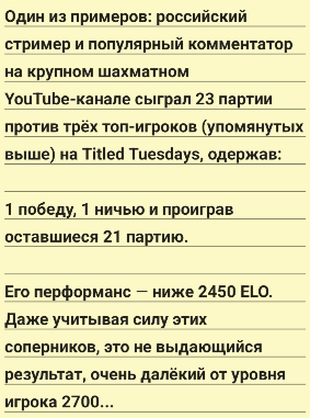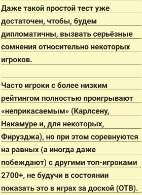 с точки зрения крамника, "невероятные результаты" наки против шимы говорят о том, что читерит шима. а "невероятные результаты" наки против других говорят о том, что читереит нака.