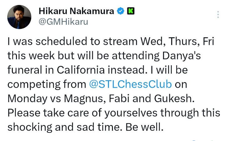 …Такое поведение не может и не должно быть терпимым. Именно наше сообщество и руководящие органы должны показать пример — дать понять, что подобные проявления ненависти будут иметь последствия. Мы должны ясно заявить: шахматы выступают против таких поступков. Если кто-то совершает их намеренно и со злым умыслом — ему не место в нашем мире. ФИДЕ и её этический комитет должны разработать чёткие правила, обеспечивающие безопасность игроков — и на турнирах, и в интернете. Всё, что привело к этой трагедии, происходило у всех на глазах последние полтора года. Этого можно было избежать. Нельзя допустить, чтобы нечто подобное повторилось.