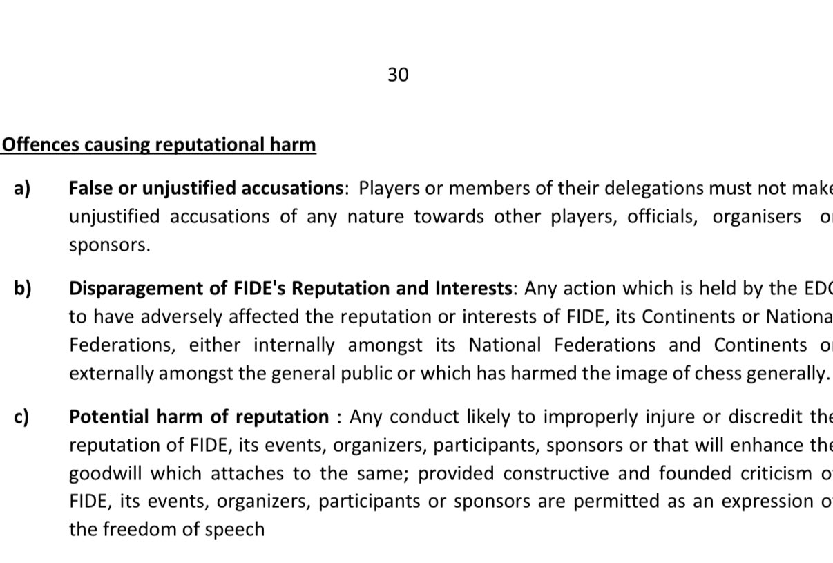 Я призываю @FIDE_chess к действию. У ФИДЕ есть чёткий этический и дисциплинарный кодекс, и сложно понять, как поведение Крамника не нарушает несколько пунктов, особенно статью 11 (скриншоты прилагаются).
