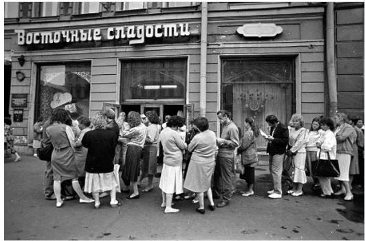 В Ленинграде на Невском был магазин "Восточные сладости" Там всегда была очередь за разными вкусностями, мы брали там по два пакета вкусняшек и "Сливочное полено". Его адрес: Невский Проспект, 104, ближе к Московскому вокзалу. Там стояли очереди… Причём томиться в ожидании приходилось в двух очередях, сначала в отдел, потом в кассу, которые стояли в центре торгового зала. Это единственное, что омрачает воспоминание. Ненавижу очереди! Но, какие же вкусные были Восточные сладости!!!