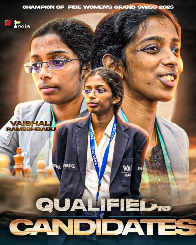 Вайшали сыграла надёжную ничью чёрными фигурами против бывшей чемпионки мира Тань Чжуньи в последнем туре! Эта ничья обеспечила Вайшали победу в турнире и путёвку в Турнир претенденток 2026 года.