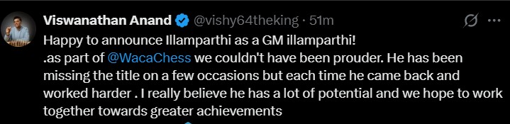 — Нихал всегда говорил мне, что я легко могу быть игроком уровня 2600. Когда я был 2300, а он 2500, мы сыграли вничью, и он сказал, что я должен играть на его уровне. Это придало мне уверенности.
