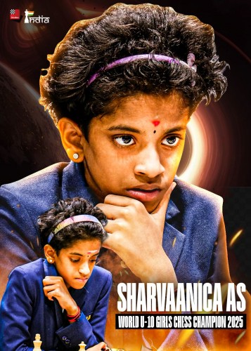 10-летняя Шарваника A.S. стала чемпионкой мира среди девочек до 10 лет в 2025 году. Она набрала 9 из 11 очков и выиграла чемпионат мира среди девочек до 10 лет (Cadets), принеся Индии золотую медаль!