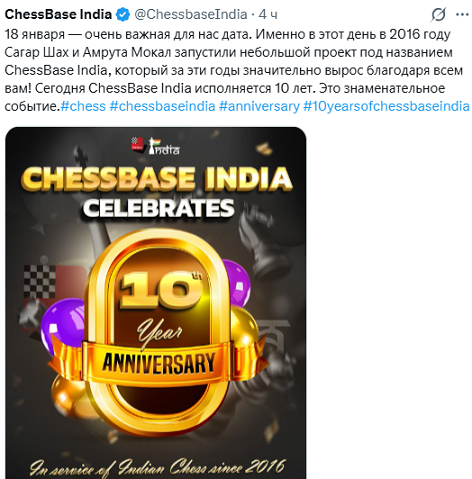 Время летит, и @ChessbaseIndia отмечает свой первый юбилей — 10 лет.