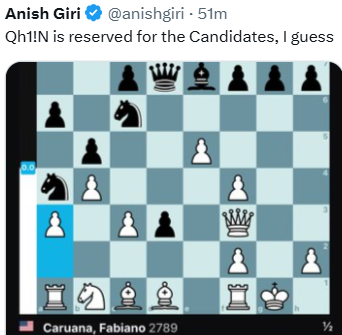 Things should be really exciting once we return to playing in the US Champs: Rd 5 has So-Aronian, Rd 6 has Caruana-So and Aronian Niemann and Rd 7 has Niemann-Caruana 🔥 After that the only time the current top 4 play each other will be in Rd 11, Aronian-Caruana.